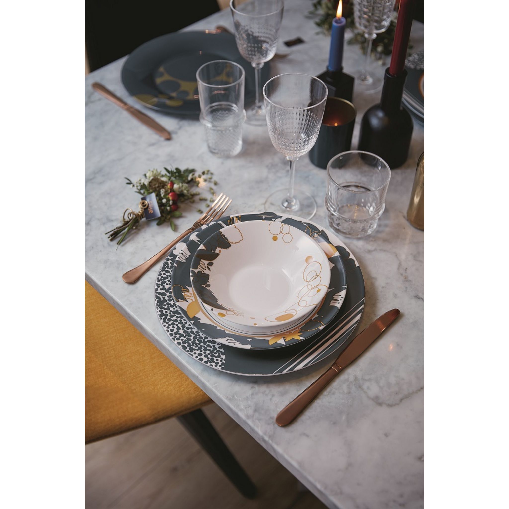 6 assiettes plates 28 cm, 6 assiettes creuses 23 cm et 6 assiettes dessert 22 cm