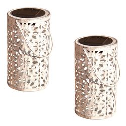 2 lanternes solaires ombre fleur BLOOM Blanc Metal H31cm