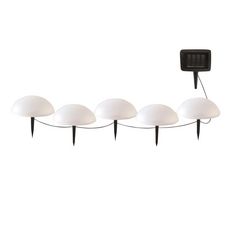 BOULE SOLAIRE LED : Half Moon est un ensemble de cinq balises solaires à base LED blanc froid qui possède jusqu'à 8 heures d'autonomie de fonctionnement. Designs et épurées, ces demi sphères reliées baliseront votre extérieur en toute discrétion. Le lot de balises solaires Half Moon est un éclairage extérieur solaire doux qui vous permettra d'illuminer votre jardin ou tout simplement de baliser une allée, le tout grâce à l'énergie du soleil.