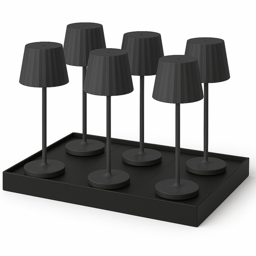 6 lampes avec plateau de chargement ABBY Noir Aluminium H29 cm