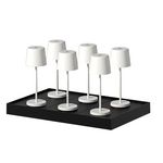LOT DE 6 MINI LAMPES DE TABLE LED AVEC PLATEAU DE CHARGEMENT INCLUS : Découvrez le lot de 6 lampes de table KELLY MINI, parfaites pour ajouter une touche élégante à votre décoration. Ces lampes sans fil sont dotées d'une base LED blanc chaud à intensité variable et offrent jusqu'à 7 heures d'autonom