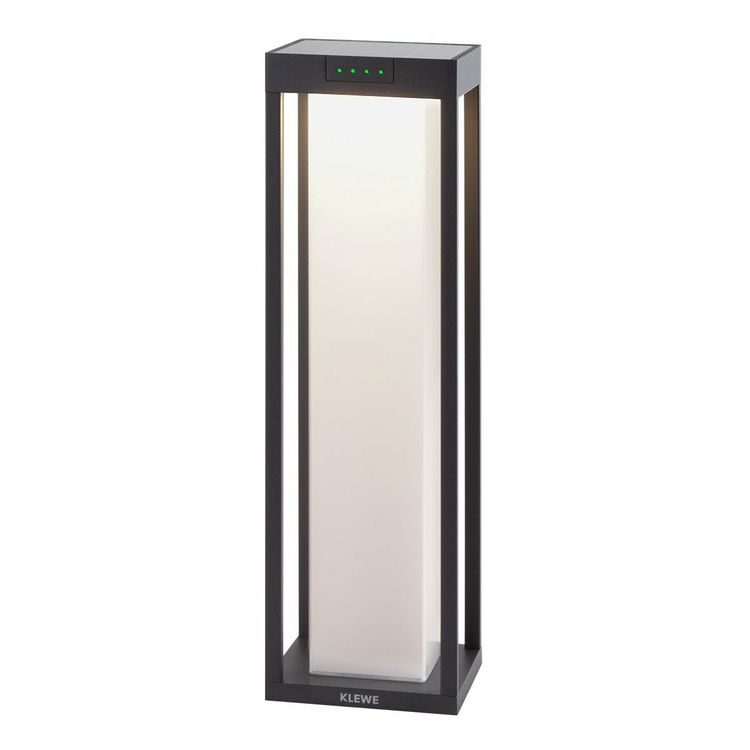 Klewe BORNE SOLAIRE : RADIA MAXI MOON est une borne solaire qui offre une solution d'éclairage esthétique pour votre extérieur. Son panneau solaire collecte l'énergie tout au long de la journée, la garde dans ses batteries hautes capacité, pour offrir un éclairage optimal et blanc chaud une fois la