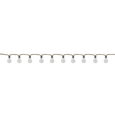 - ROBUSTE : ainsi, la guirlande lumineuse LED Fantasy Cord design d'une longueur totale de 7,50m composée de 10 ampoules transparentes peut s'utiliser à l'extérieur mais à l'abris de l'humidité (IP20). Il y a 50cm entre chaque ampoule et 3m de la prise à la première ampoule.