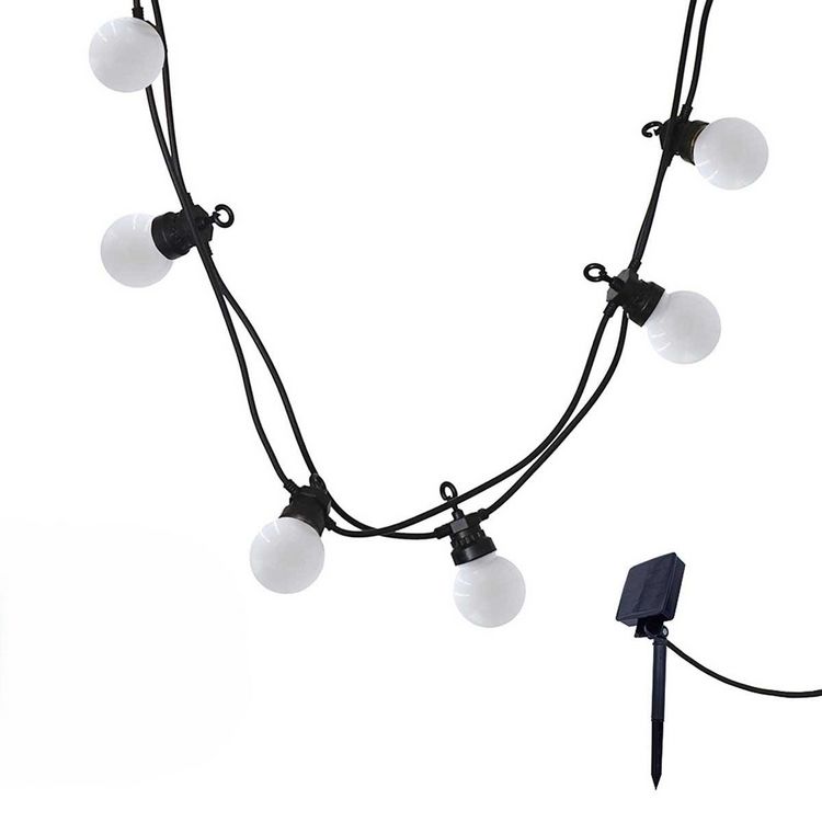 - ROBUSTE : ainsi, la guirlande lumineuse LED Party Milky Solar design d'une longueur totale de 5,70m composée de 10 ampoules rondes blanches opaques est protégée contre les éclaboussures (IP44) et résiste aussi aux UV.