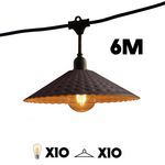 - ROBUSTE : la guirlande originale Vinty Light, protégée contre les éclaboussures (IP64) et résistante aussi aux UV, fait une longueur totale de 6m. L'abat-jour fait 19cm de diamètre. Cette guirlande lumineuse est composée de 10 ampoules à filament LED blanc chaud, longues et transparentes qui permettront de créer une ambiance chaleureuse. Il y a 40cm entre chaque ampoule et 2,15m de la prise à la première ampoule.