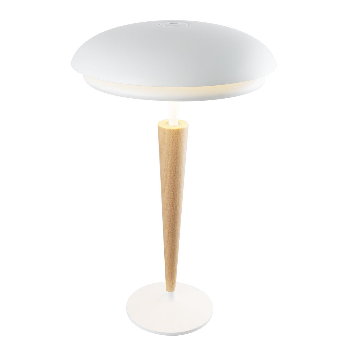 Ubiqua LAMPE DE TABLE SANS FIL SCANDINAVE : Découvrez LAPIS, une lampe de table sans fil blanche avec un pied en bois de hêtre. C'est une création du célèbre designer italien Franco Pagliarini. Inspirée des pays nordiques, elle est conçue avec des matériaux de haute qualité, associant l'aluminium, l