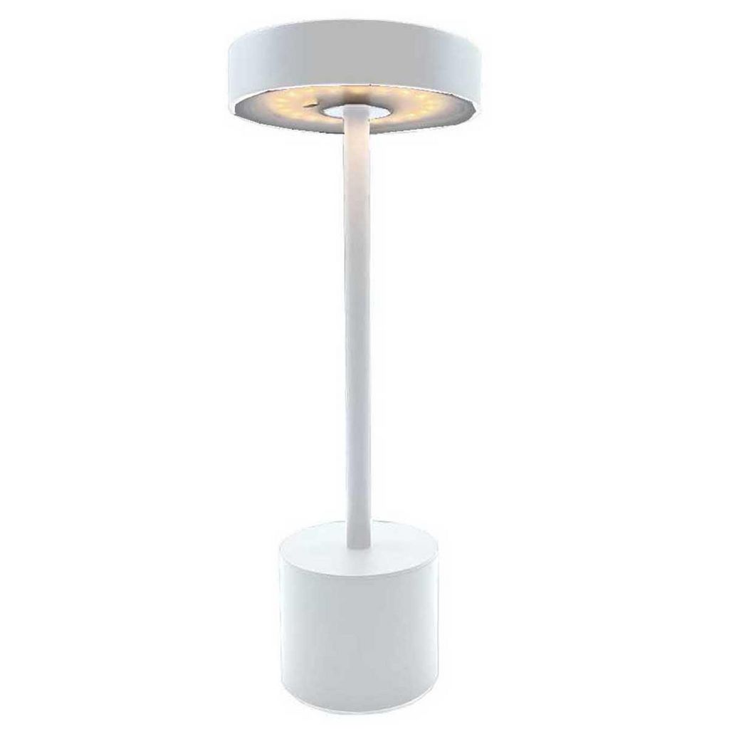 LAMPE DE TABLE LED : ROBY WHITE est une lampe de table LED sans fil avec une base LED blanc chaud à intensité variable. Cette lampe à poser se distingue par son design sobre et élégant mais également par sa grande autonomie de fonctionnement (jusqu'à 50 heures à basse intensité). Lampe à poser autonome, elle apportera à votre décoration une touche chic et tendance. Elle est idéale comme lampe de table design, lampe de chevet ou encore pour illuminer vos tables de fêtes.