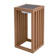 LAMPE SOLAIRE LED : CHENNAI est une lampe sans fil LED blanc chaud. Cette lampe solaire se distingue par son design épuré créé par les tasseaux de bois qui composent sa structure. La lanterne CHENNAI est en teck massif, ce qui lui donne sa teinte marron foncé, parfaite aller dans un jardin ou sur une table à manger.