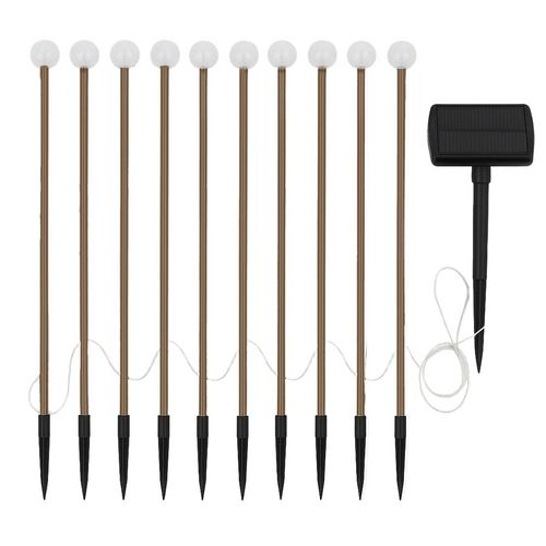 En savoir +- MINI-BOULES À PIQUER :Illuminez votre jardin ou allée avec les mini-boules à piquer solaires LOLLY ! Ce lot comprend 10 balises LED scintillantes de 40 cm de hauteur et 2,5 cm de diamètre, parfaites pour un balisage décoratif et fonctionnel. Chaque mini-boule se plante facilement dans le sol et est reliée à un panneau solaire central, vous permettant de profiter d'un éclairage autonome et éco-responsable.