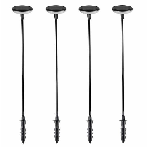 LOT DE 4 BALISES SOLAIRES LED : 4x LUCENTY est un lot de 4 balises solaires à base LED blanc chaud en plastique qui possède jusqu'à 12 heures d'autonomie de fonctionnement. Son design atypique avec sa tige très longue s'accordera à merveille dans vos allées de plantes ou dans des pots de fleurs. Les balises solaires 4x LUCENTY offrent un éclairage extérieur solaire doux et chaleureux.