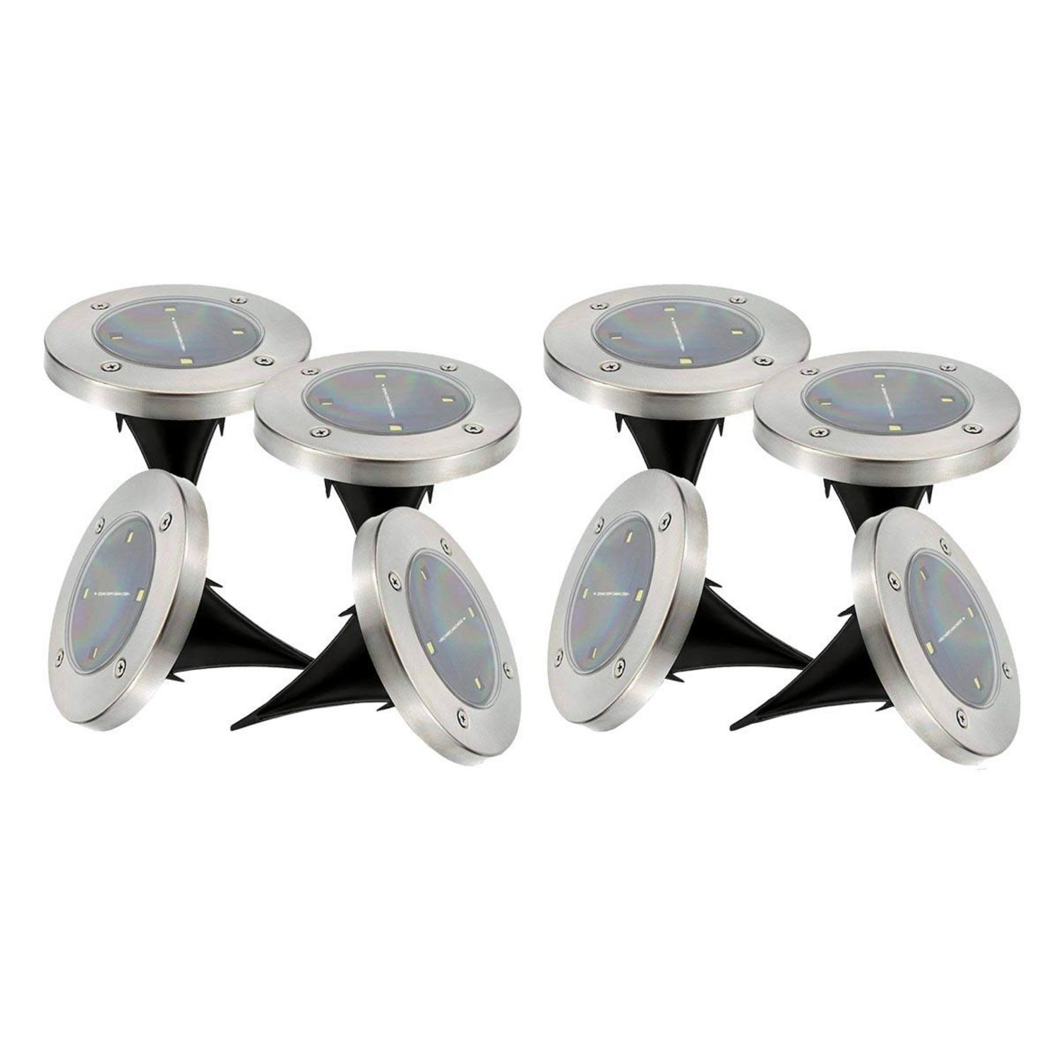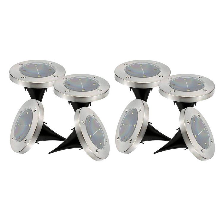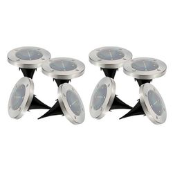 Lot de 8 spots solaires ronds DECKY Argent Acier inoxydable D12cm