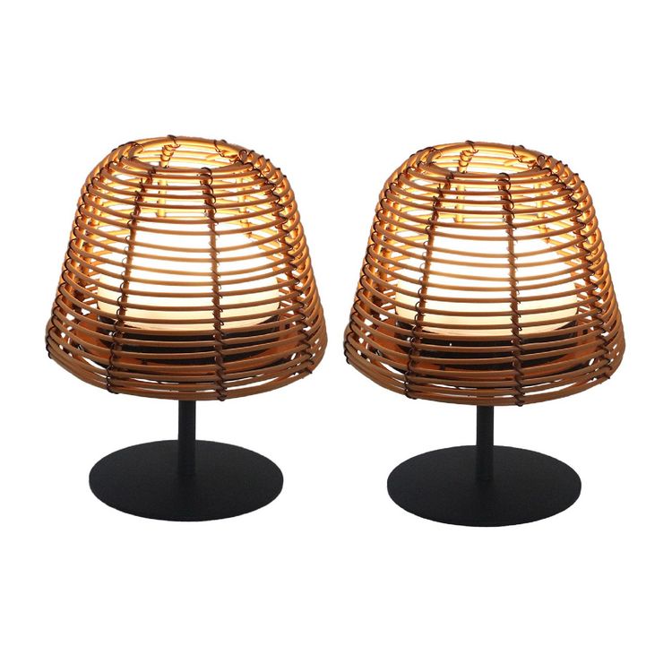 Set de 2 lampes de table bohème TWINS Bois Poly rotin H16CM