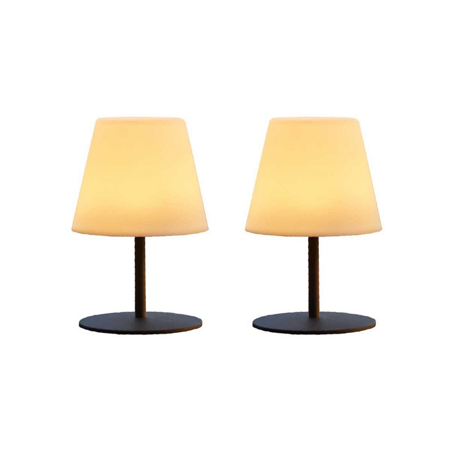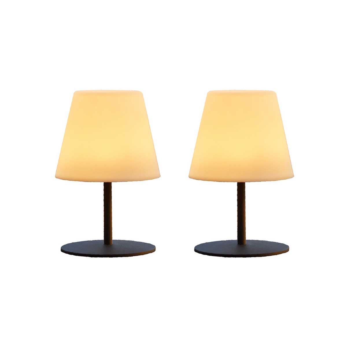 Lampes de table design et rechargeables : Résistent à l'eau et à la poussière. Illuminez votre table de jardin ou d'intérieur grâce ces deux lampes LED nomades et design. Avec un design très simple, ces lampes trouveront leur place dans tous les espaces de vie : bureau, balcon, table de chevet. Elles viendront éclairer vos apéritifs estivaux et vos repas dans le jardin en se plaçant sans fil sur votre table.