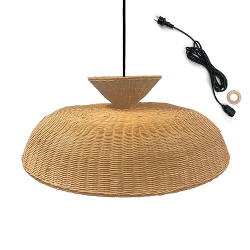ABAT-JOUR EN ROTIN : La suspension DARMA OUTDOOR CABLE, issue de l'artisanat, est fabriquée en rotin naturel. Ce matériau résistant est à la fois souple et rigide, qui permet une multitude de formes. Exotique et chaleureuse, elle mettra en lumière un intérieur moderne et va s'adapter parfaitement à un style plus bohème ou vintage grâce à son look ethnique chic. Son tressage unique va sublimer votre espace de vie. Dimensions : Diamètre 80 cm x 30cm de hauteur.