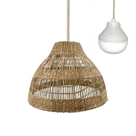 SUSPENSION EN HERBE MARINE : La suspension MERIDA NOMAD issue de l'artisanat, est fabriquée en herbe marine tressée. Exotique et chaleureuse, elle mettra en lumière un intérieur moderne et va s'adapter parfaitement à un style plus bohème ou vintage grâce à son look ethnique chic. Son tressage unique va sublimer votre espace de vie. Dimensions : 48 x 48 x 34cm.