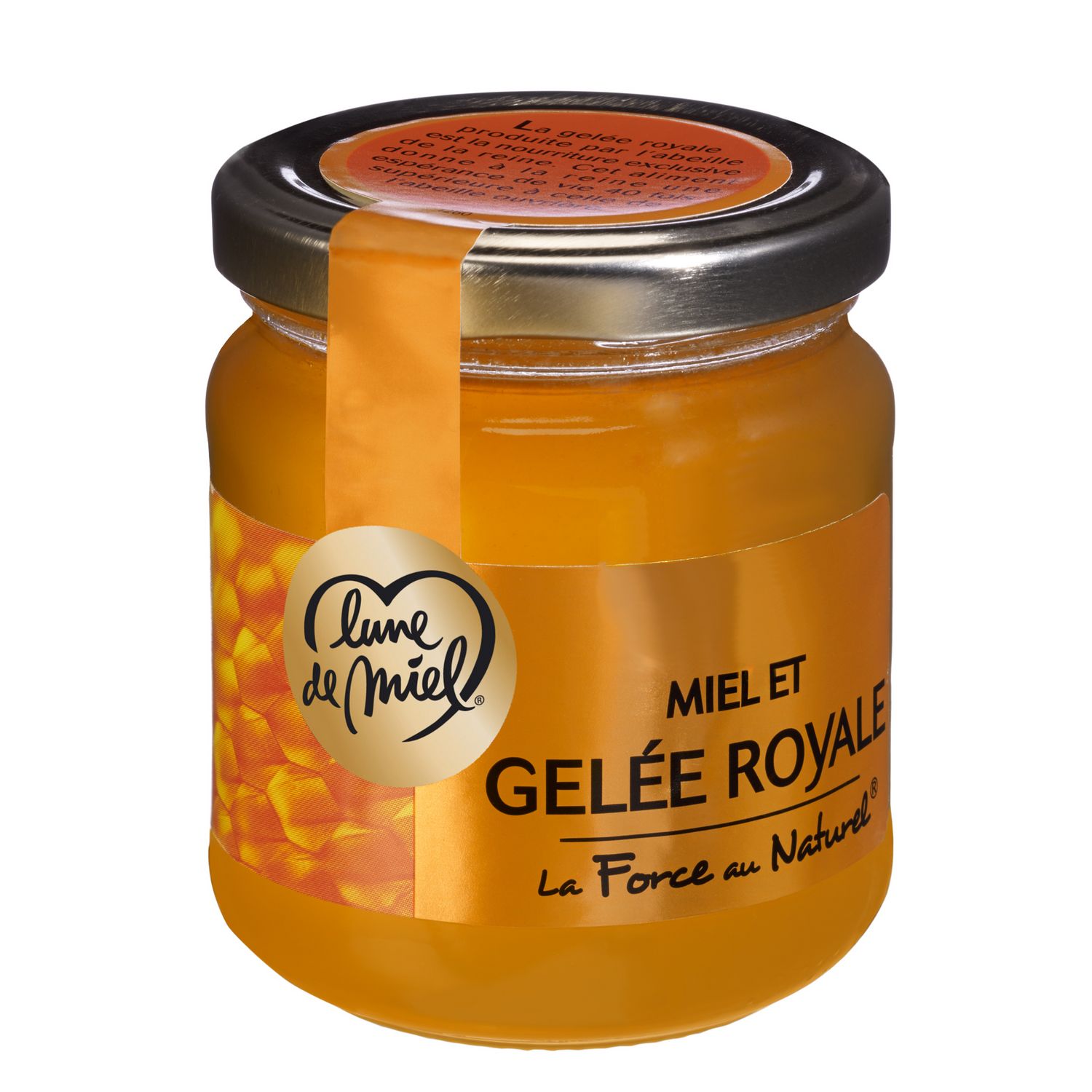 Le pot verre 250g de Miel et Gelée Royale liquide Lune de Miel® vous séduira au quotidien par sa transparence qui permet d'apprécier la couleur dorée et chaude de ce nouvel allié sucré ! Avec le Miel et Gelée Royale liquide Lune de Miel® prenez de nouveaux réflexes quotidien.