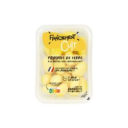 Ces pommes de terre entières sans peau sont origine France et issues de notre coopérative. Réchauffez la barquette 2 min au micro-ondes et c'est prêt !