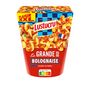 Serpentini cuits agrémentés d'une sauce bolognaise.