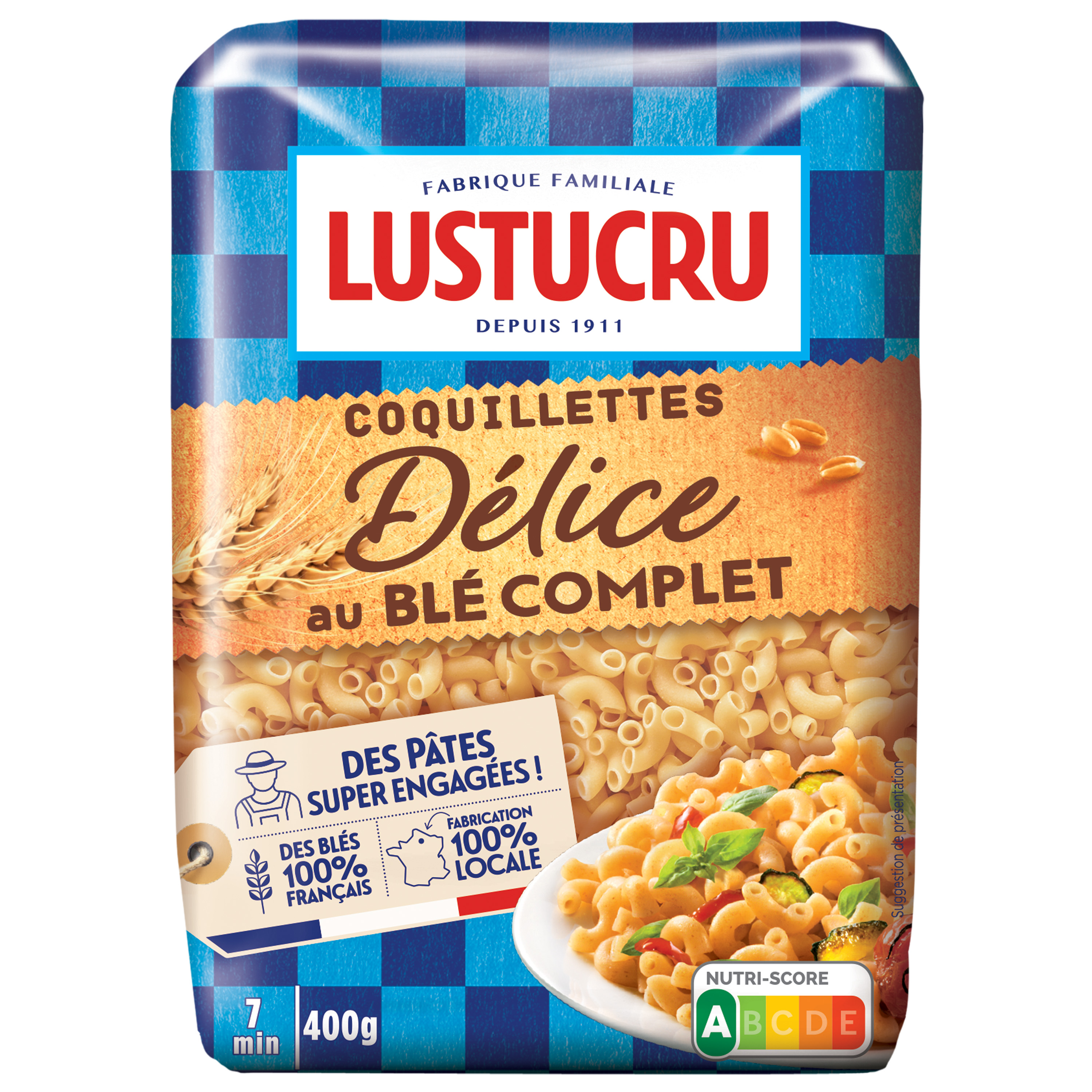 La pâte emblématique de Lustucru au blé complet, source de fibres et de minéraux pour un repas plus équilibré ! Pâtes alimentaires au blé complet