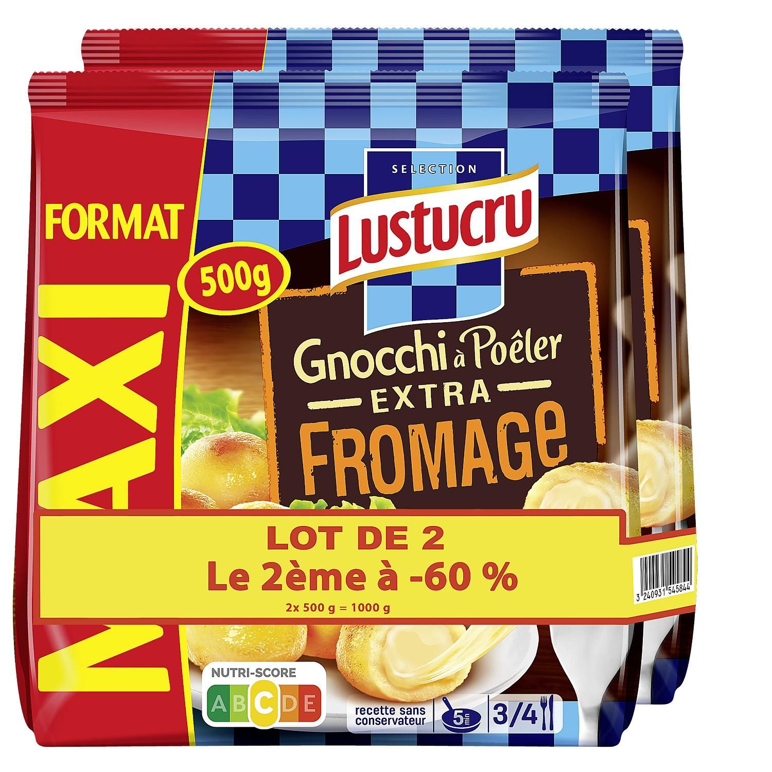 Comment résister à un Gnocchi à Poêler Extra Fromage Lustucru ? Croustillant à l'extérieur, avec son cœur de fromage EXTRA fondant… Toute la famille va en raffoler ! Un format Maxi pour un Maxi plaisir. Une recette garantie sans conservateur.