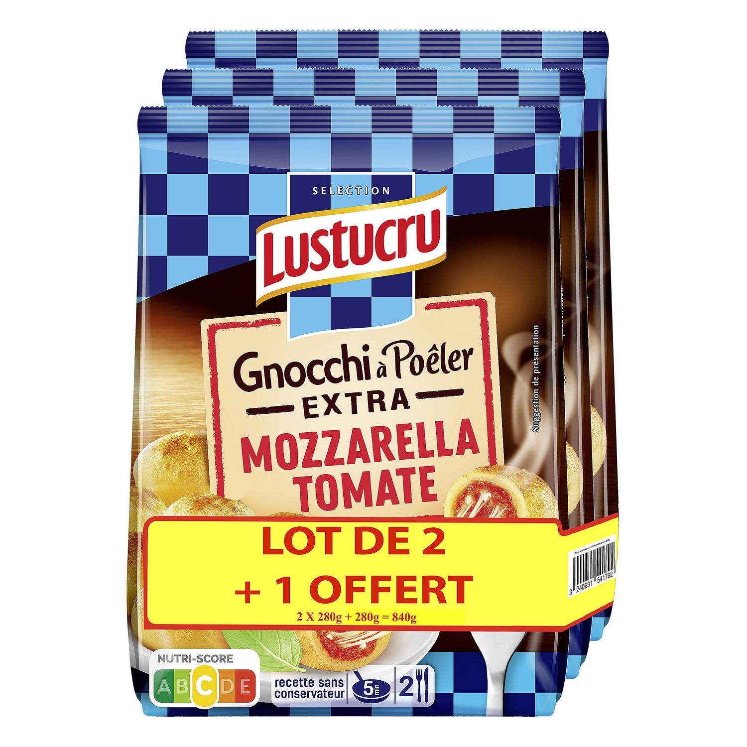 Comment résister à un Gnocchi à Poêler Extra Tomate Mozzarella Lustucru ? Croustillant à l'extérieur, avec un cœur EXTRA fondant de mozzarella et tomates cuisinées aux herbes… Toute la famille va en raffoler ! Une recette garantie sans conservateur.