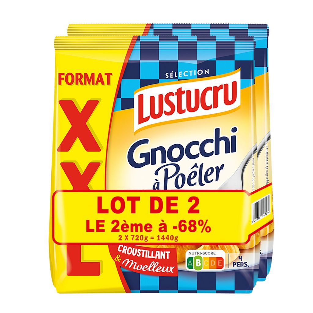 Pour vous faire plaisir et vous simplifier la vie, Lustucru a inventé les Gnocchi à Poêler prêts en 5 min, en format XXL pour un plaisir XXL. Délicieusement croustillants à l'extérieur et moelleux à l'intérieur, ils régaleront toute la famille !
