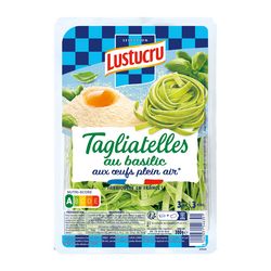 Ingrédients : Semoule de BLE dur, ŒUFS frais issus de poules élevées en Plein Air 11%, épinards 9%, eau, basilic 1.8%, sel, arôme naturel. Peut contenir des traces de soja et moutarde. Conditionné sous atmosphère protectrice.
