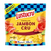 Pâte 64% (semoule de BLE dur, ŒUFS frais issus de poules élevées en Plein Air 13,5%, eau), Farce 36% (Jambon cru (jambon de porc*, sel) 6,1%, eau, chapelure (farine de BLE, eau, sel, levure), CREME FRAICHE 4,4%, pommes de terre déshydratées-épice: curcuma, FROMAGE à pâte dure, LACTOSERUM (LAIT), huile de colza et/ou tournesol, arômes naturels (BLE, LAIT), BEURRE pasteurisé, sel, basilic, poivre, noix de muscade). Pourcentages exprimés sur le produit total. Peut contenir des traces de soja, moutarde et gluten provenant d'autres céréales. *Viande de porc origine : UE. Conditionné sous atmosphère protectrice.