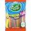 Ingrédients : Sucre, Sirop de glucose-fructose, Farine de BLE, Acidifiants ( Acide Malique, Acide Citrique), Dextrose, Huile de palme, Denrées alimentaires colorantes ( Concentrés de Spiruline, Carthame), Arômes, Colorants ( Anthocyanes, Curcumine), Antioxydants ( Extrait riche en tocophérols, Acide Ascorbique).