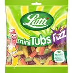 Découvre MINI TUBS FIZZ de Lutti, l'assortiment de délicieux petits tubes avec un coeur moelleux, aux goûts acidulés de cassis, fraise, pomme-pêche et citron.
