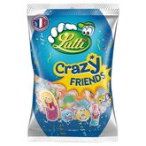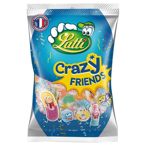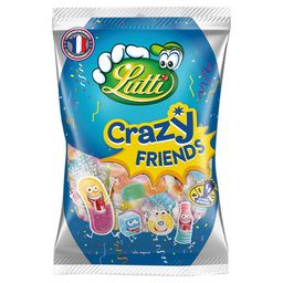 Ingrédients : Sucre, Sirop de glucose-fructose, Amidon modifié , Gélatine;, Acidifiants ( Acide malique, Acide citrique , Acide Lactique), Correcteur d'acidité ( Malates de sodium), Arômes, Denrées alimentaires colorantes ( Concentré de Spiruline, Carthame, Radis, Pomme, Cassis), Colorants ( Anthocyanes, Bleu Brillant FCF, Extrait de Paprika, Lutéine).