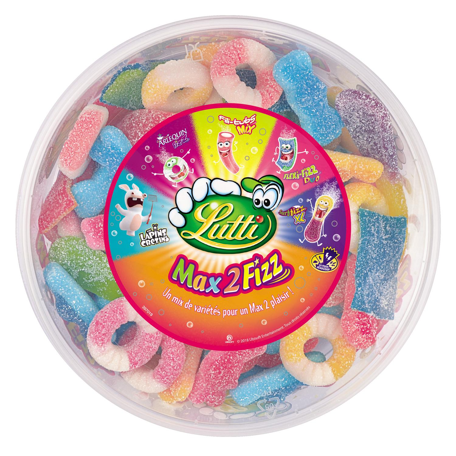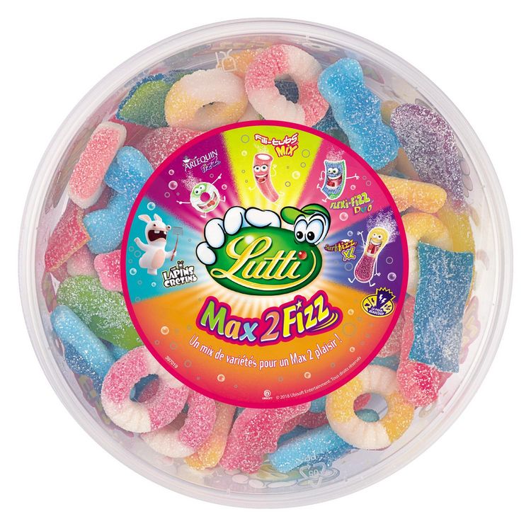 Ingrédients : Sirop de glucose, Sucre, Amidon modifié, Sirop de glucose-fructose, Farine de BLE, Acidifiants ( Acide Malique, Acide citrique, Acide lactique), Correcteur d'acidité (Malates de sodium), Dextrose, Arômes , Huile végétale (Palme), Colorants (Anthocyanes, Bleu FCF, Bleu patenté, Curcumine, Extrait de Paprika, Lutéine), Denrées alimentaires colorantes ( Concentré de Pomme, Carthame, Radis, Spiruline, Patate douce, Cassis), Antioxydants ( Acide ascorbique, Extrait riche en tocophérols).Stabilisants (Gomme d'acacia, Carboxymethylcellulose)..