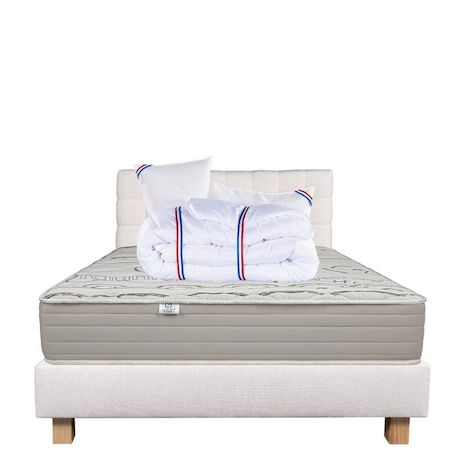 Ainsi qu'un oreiller en 60x40cm avec un garnissage 100% mousse viscoélastique. Pour compléter ce pack nous avons selectionné notre sommier tapissier en bois massif ainsi qu'une tête de lit.
