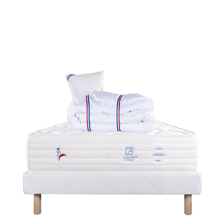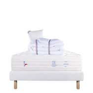 Ainsi qu'un oreiller en 60cm x 40cm avec un garnissage 100% mousse viscoélastique. Pour compléter ce pack nous avons selectionné notre sommier tapissier en bois massif. Laissez-vous envelopper par le confort inégalé de cet ensemble, car il a été créé pour vous offrir le meilleur sommeil de votre vie.