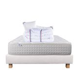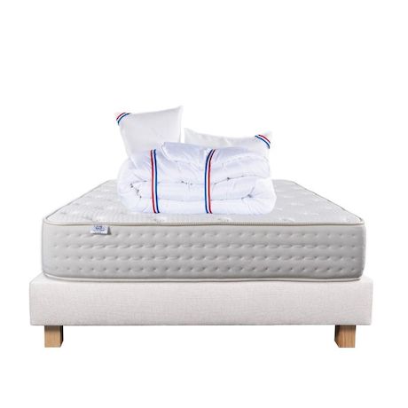 Purlux c'est un matelas durable, confortable et respirant. Il offre un soutien uniforme du corps, une résistance à l'affaissement et une bonne isolation des mouvements, tout en étant hypoallergénique. Nous avons souhaité le combiner avec une couette de 450g avec une très bonne régulation thermique, elle possède un bon gonflant avec un toucher soyeux ainsi qu'un oreiller en 60x40cm avec un garnissage 100% mousse viscoélastique. Pour compléter ce pack nous avons selectionné notre sommier tapissier en bois massif.