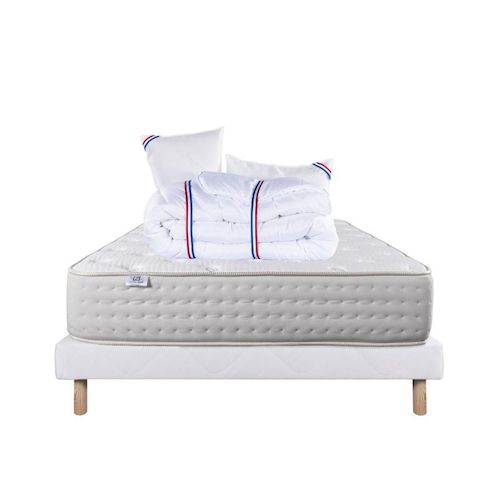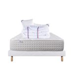 Purlux c'est un matelas durable, confortable et respirant. Il offre un soutien uniforme du corps, une résistance à l'affaissement et une bonne isolation des mouvements, tout en étant hypoallergénique. Nous avons souhaité le combiner avec une couette de 450g avec une très bonne régulation thermique, elle possède un bon gonflant avec un toucher soyeux ainsi qu'un oreiller en 60x40cm avec un garnissage 100% mousse viscoélastique. Pour compléter ce pack nous avons selectionné notre sommier tapissier en bois massif.