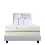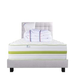 Nous avons souhaité le combiner avec un oreiller en 60x40cm avec un garnissage 100% mousse viscoélastique et une couette de 450g avec une très bonne régulation thermique qui possède un bon gonflant avec un toucher soyeux.