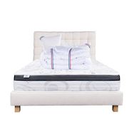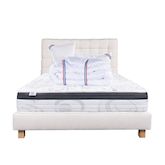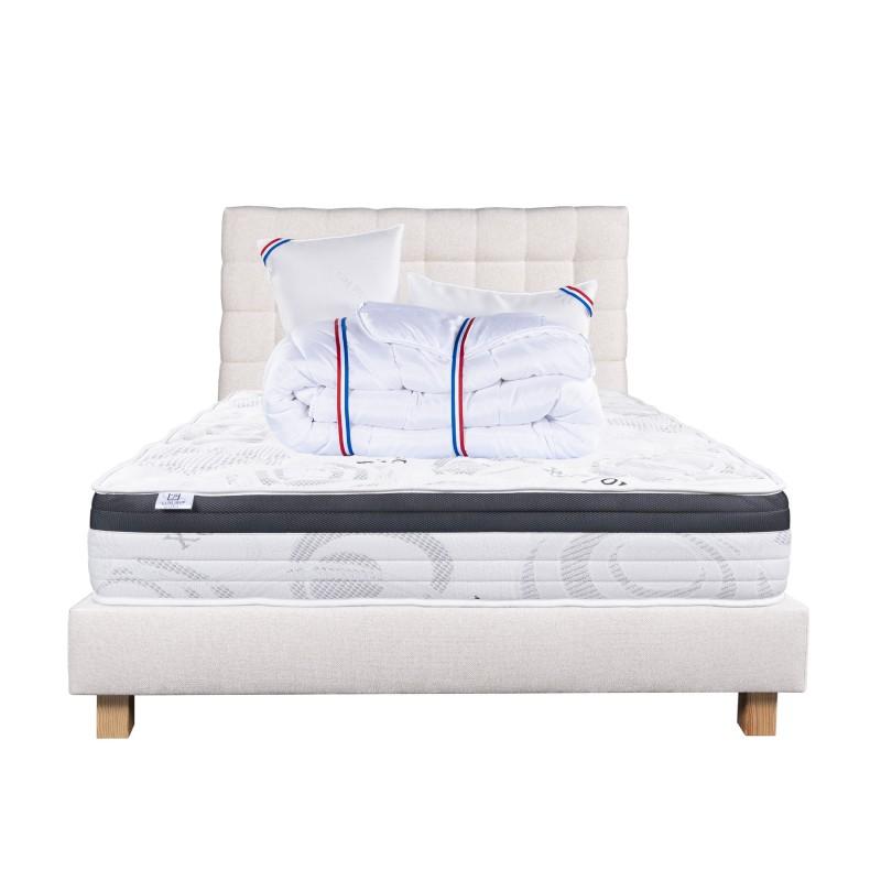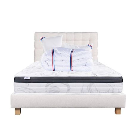 Composé de matériaux qui apporteront à votre matelas une température adapté tout le long de l'année. Sa technologie permet à votre corps d'être totalement soutenu, réduisant les zones de pression dans votre corps. Nous avons souhaité le combiner avec une couette de 450g avec une très bonne régulation thermique, elle possède un bon gonflant avec un toucher soyeux.