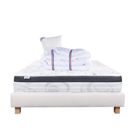Composé de matériaux qui apporteront à votre matelas une température adapté tout le long de l'année. Sa technologie permet à votre corps d'être totalement soutenu, réduisant les zones de pression dans votre corps. Nous avons souhaité le combiner avec une couette de 450g avec une très bonne régulation thermique, elle possède un bon gonflant avec un toucher soyeux.