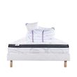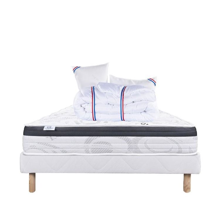 Composé de matériaux qui apporteront à votre matelas une température adapté tout le long de l'année. Sa technologie permet à votre corps d'être totalement soutenu, réduisant les zones de pression dans votre corps. Nous avons souhaité le combiner avec une couette de 450g avec une très bonne régulation thermique, elle possède un bon gonflant avec un toucher soyeux.