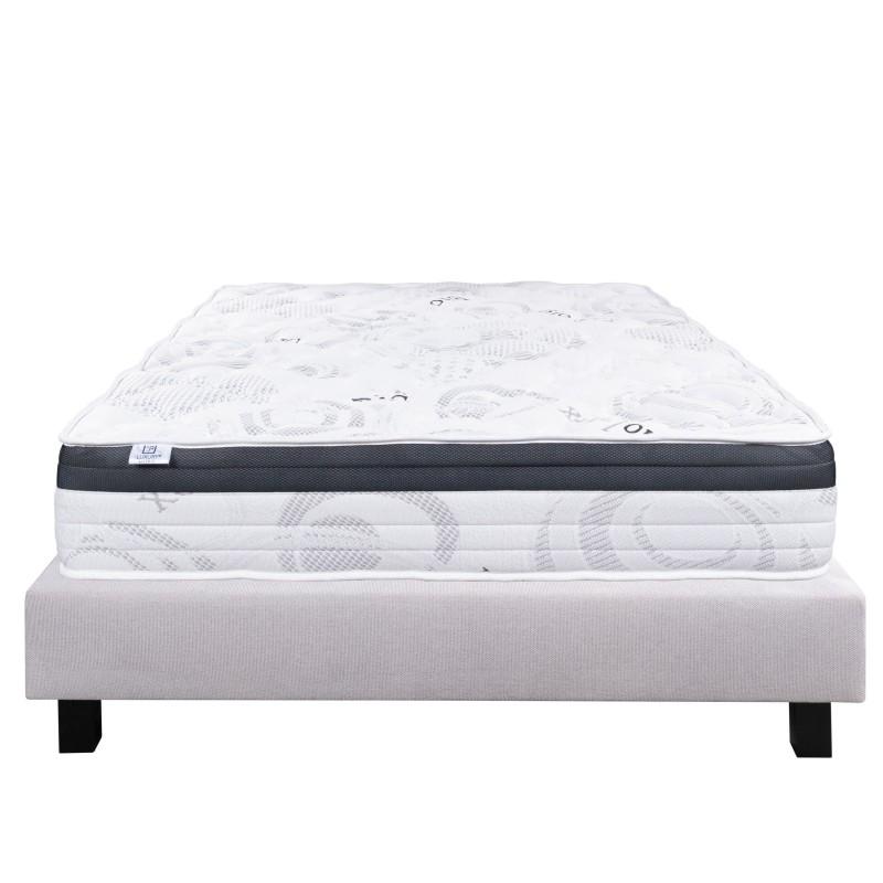 Ce matelas est composé de matériaux qui apporteront à votre matelas une température adapté tout le long de l'année. Sa technologie permet à votre corps d'être totalement soutenu, réduisant les zones de pression dans votre corps, évitant ainsi les perturbations pendant votre repos. Pour compléter ce pack nous avons selectionné notre sommier tapissier en bois massif.