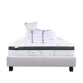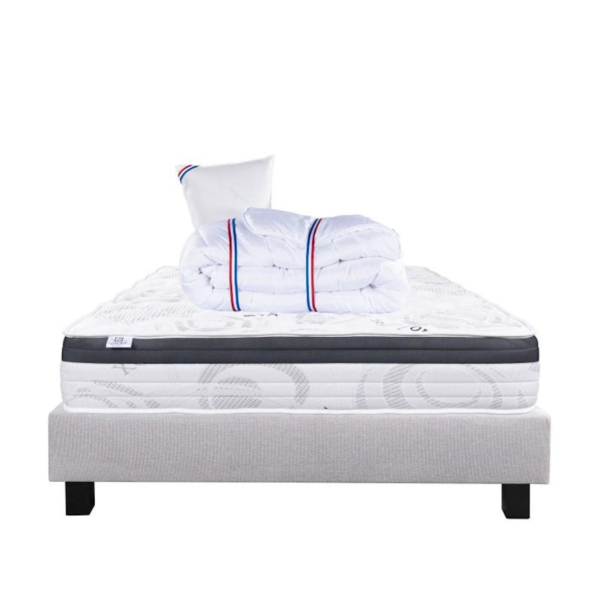 Composé de matériaux qui apporteront à votre matelas une température adapté tout le long de l'année. Sa technologie permet à votre corps d'être totalement soutenu, réduisant les zones de pression dans votre corps. Nous avons souhaité le combiner avec une couette de 450g avec une très bonne régulation thermique, elle possède un bon gonflant avec un toucher soyeux.