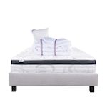 Ainsi qu'un oreiller en 60x40cm avec un garnissage 100% mousse viscoélastique. Pour compléter ce pack nous avons selectionné notre sommier tapissier en bois massif.