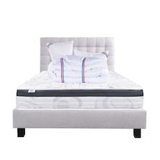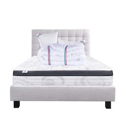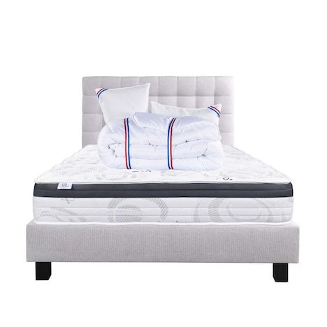 Composé de matériaux qui apporteront à votre matelas une température adapté tout le long de l'année. Sa technologie permet à votre corps d'être totalement soutenu, réduisant les zones de pression dans votre corps. Nous avons souhaité le combiner avec une couette de 450g avec une très bonne régulation thermique, elle possède un bon gonflant avec un toucher soyeux.