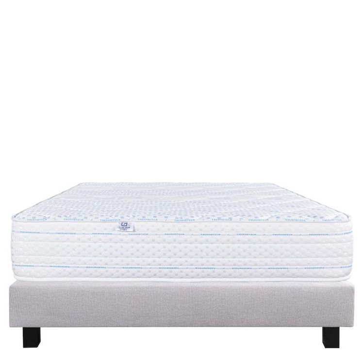Cet ensemble est le résultat de deux décennies de recherche et de développement dans la quête incessante du repos parfait. Ce matelas est la synthèse de la technologie de mousse la plus avancée, combinée à l'art du design ergonomique, pour créer une expérience de sommeil inégalée. Quels que soient votre âge, votre taille ou vos préférences en matière de sommeil, ce matelas a été conçu dans le but de vous offrir une excellente nuit de sommeil. Il incarne l'excellence dans le monde du sommeil. Pour compléter ce pack nous avons selectionné notre sommier tapissier en bois massif.
