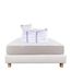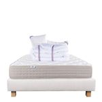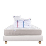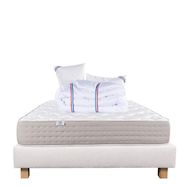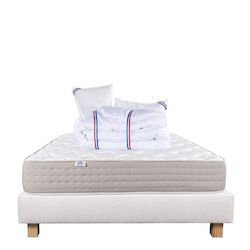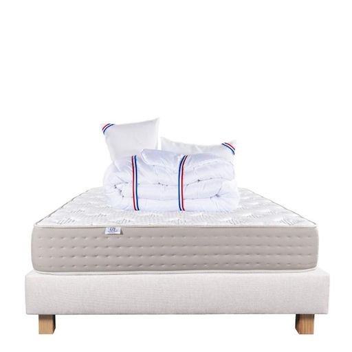 Ce matelas est constitué de différentes couches de mousse haute densité et la technologie des ressorts. Nous avons souhaité le combiner avec une couette de 450g avec une très bonne régulation thermique, elle possède un bon gonflant avec un toucher soyeux.