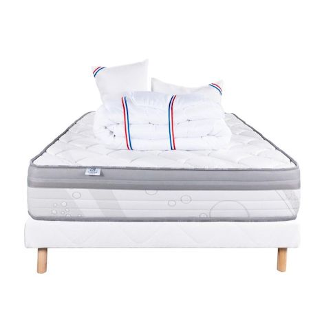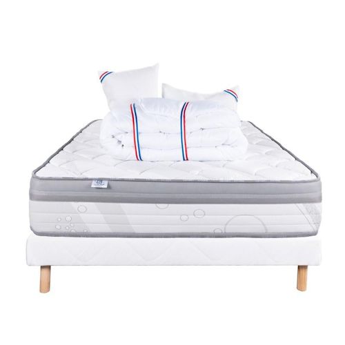 Ainsi qu'un oreiller en 60cm x 40cm avec un garnissage 100% mousse viscoélastique. Pour compléter ce pack nous avons selectionné notre sommier tapissier en bois massif. L'ensemble vous permettra d'avoir un sommeil réparateur très rapidement.