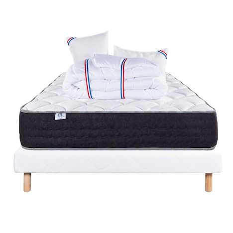 Ensemble matelas <> ferme 7/10, épaisseur 27cm + sommier blanc + couette + oreiller