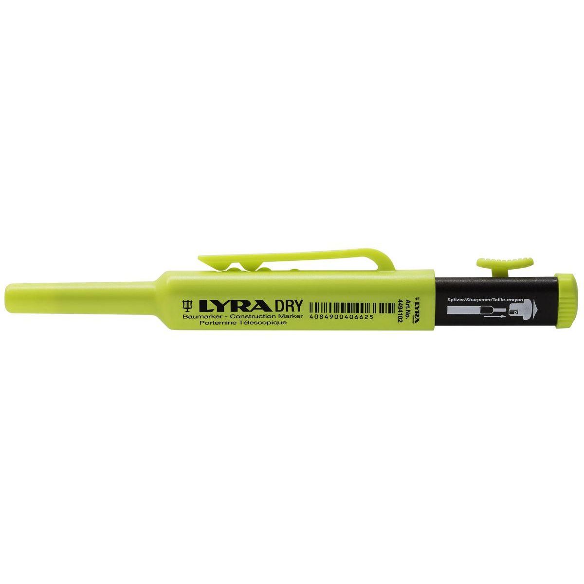 Crayon graphite Lyra Dry en vracCrayon à mine graphite télescopique. Permet de marquer sur toutes les surfaces. Pointe fine et longue (40 mm) pour des marquages à travers les supports (trou de vis) ou dans les endroits difficiles d'accès. Avancement de la mine par bouton latéral coulissant. Capuchon