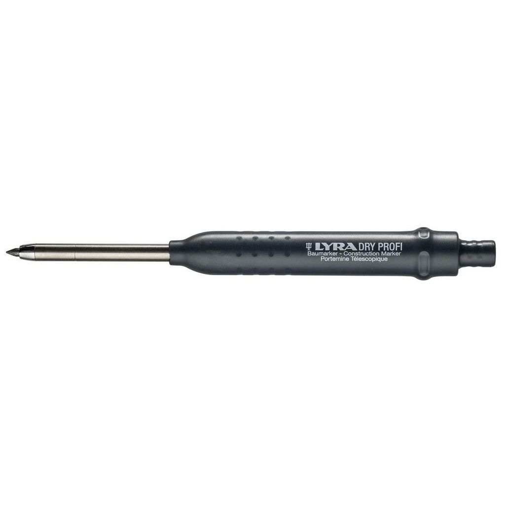 NOUVEAU Lyra Dry haute qualité avec réglage de la longueur de mine par bouton poussoir arrière. Porte-mine en acier inoxydable endurant et très résistant. Forme effilée idéale pour marquer au fond d'un trou. Nouveau capuchon avec clip de poche amélioré pour une utilisation facile d'une seule main. Nouveau taille-crayon intégré pour affûter sa mine sans retirer le capuchon du pantalon. Livré avec une mine graphite 2B pour toutes surfaces (bois, métal, verre, céramique, etc). Rechargement facile par l'avant ou par l'arrière. Diamètre de la mine 2,8 mm